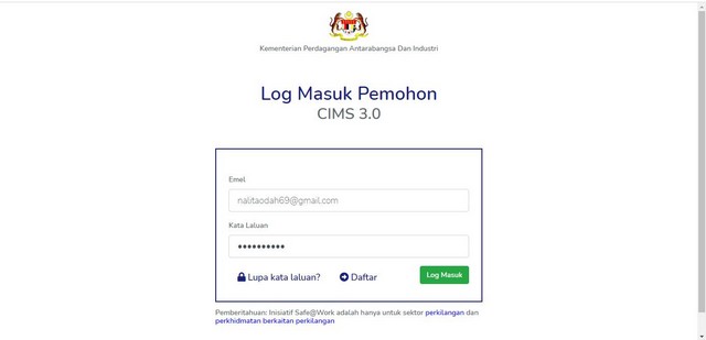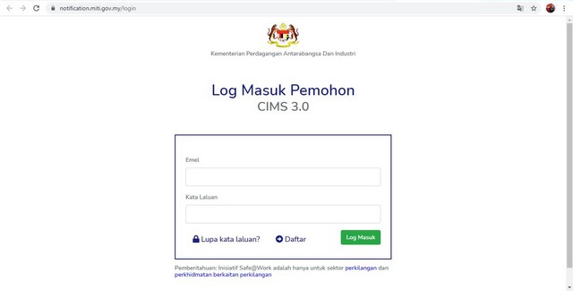 Pendaftaran Secara Atas Talian Surat MITI