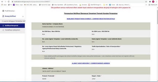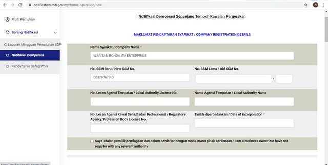 Puan Nalita juga telah memberi segala maklumat yang diminta bagi melancarkan proses pendaftaran secara atas talian. Pendaftaran berlangsung selama satu hari selang beberapa waktu dan pada akhirnya permohonan telah berjaya dilakukan. Puan Nalita amat memerlukan surat MITI memandangkan beliau perlu merentas beberapa kawasan yang jaraknya melebihi 10km. Hal ini demikian kerana permintaan pelanggan untuk membeli barangannya bukan hanya tertumpu di kawasan Tanjung Piai bahkan juga di luar kawasan.