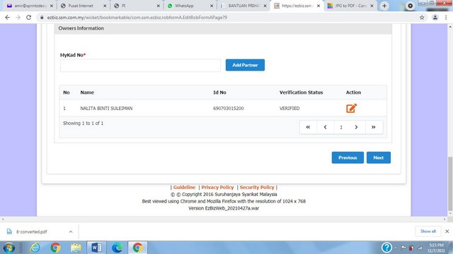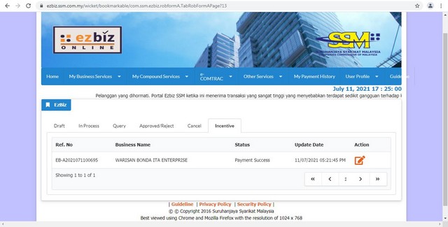 12 Julai 2021 | Aktiviti TerkiniPada 11 Julai 2021 iaitu pada hari ahad, Pengurus PIK Tanjung Piai telah membantu seorang usahawan yang tinggal berdekatan dengan PIK untuk mendaftarkan lesen perniagaannya. Beliau ialah Puan Nalita binti Suleiman yang merupakan ahli berdaftar di bawah PIK semenjak awal penubuhan. Beliau ingin memperbaharui lesen perniagaannya di SSM setelah tamat tempoh dan ingin menghidupkan kembali melalui SPPP. Pendaftaran dilakukan selama 2 jam iaitu pada waktu petang pada jam 4 petang sehingga 6 petang melalui aplikasi Whatsapps sepenuhnya.