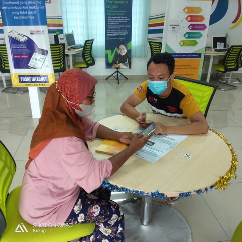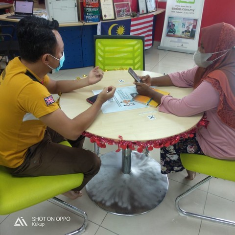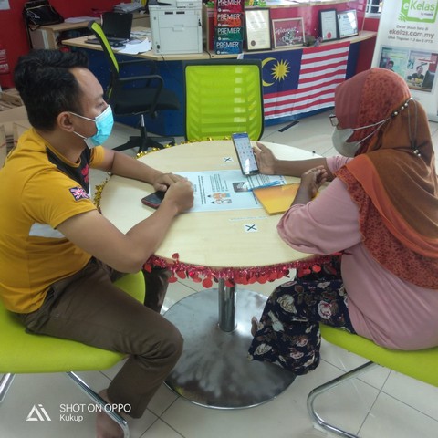 Penolong Pengurus PEDi telah membantu Puan Noraini langkah demi langkah dalam usaha beliau untuk mempelajari aplikasi pembayaran menggunakan Touch’n Go EWallet. Bermula dengan daftar masuk seterusnya ke aplikasi Go+ dan pengisian data-data peribadi termasuk nombor akaun. Pembayaran secara digital ini diajarkan kepada Puan Noraini adalah dalam usaha PEDi Tanjung Piai untuk membantu beliau memahami kaedah pembayaran yang berkonsep digital tanpa bergantung kepada tunai semata. Setelah selesai pendaftaran, proses penghantaran kod pembayaran Touch’n Go EWallet itu akan dihantar terus ke rumah Puan Noraini dalam tempoh lima hari bekerja.