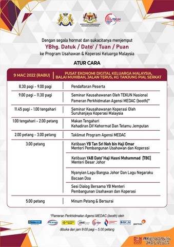 10 Mac 2022 | Aktiviti TerkiniProgram Usahawan & Koperasi anjuran pihak TEKUN Nasional dan Suruhanjaya Koperasi Malaysia telah diadakan di Dewan Tertutup Tanjung Piai pada 9 Mac 2022 bersamaan hari rabu. Program keusahawanan ini bertujuan untuk memberi pendedahan kepada komuniti setempat berkaitan dengan pelbagai bantuan khususnya untuk para peniaga yang boleh dimohon. Program ini dimulakan dengan pendaftaran peserta diikuti dengan seminar oleh pihak TEKUN Nasional dan Suruhanjaya Koperasi Malaysia. Pihak MEDAC juga merupakan antara agensi utama yang turut menyerikan lagi program keusahawanan ini dalam usaha memberi kesedaran kepada para usahawan tentang skop bantuan perniagaan.
