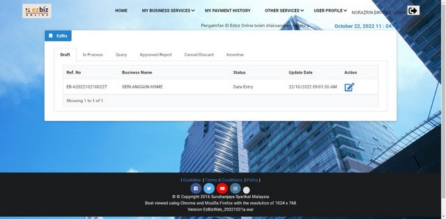 16 Oktober 2022 | Aktiviti TerkiniPendaftaran lesen SSM Melalui SPPP Siri Kedua Puluh Dua kembali dijalankan di PEDi Tanjung Piai bersama Puan Norazrin binti Ab. Ghani. Beliau merupakan usahawan yang menjalankan perniagaan secara mengurut dari rumah ke rumah dan berasal dari Kampung Chokoh. Beliau telah hadir ke PEDi Tanjung Piai pada 15 Oktober bersamaan hari sabtu pada jam 4.00 petang. Beliau menginginkan lesen SSM sebagai langkah awal untuk membuka akaun perniagaannya kelak.