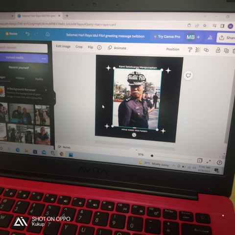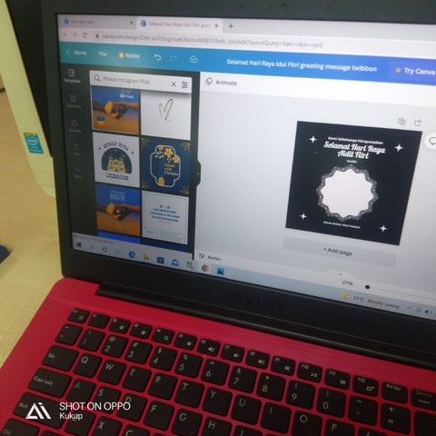 Setelah memilih rekaan bentuk yang beliau minati, beliau terus membuat ucapan dan memasukkan gambar yang beliau gemari. Pengurus PEDi hanya memberi tunjuk ajar sekiranya perlu memandangkan Tuan Haji Ma’arof dilihat sudah mahir menggunakan aplikasi Canva. Kad ucapan digital raya ini diperlukan untuk Tuan Haji Ma’arof sebagai ucapan kepada sahabat handai dan saudara mara yang mengenalinya sempena lebaran.