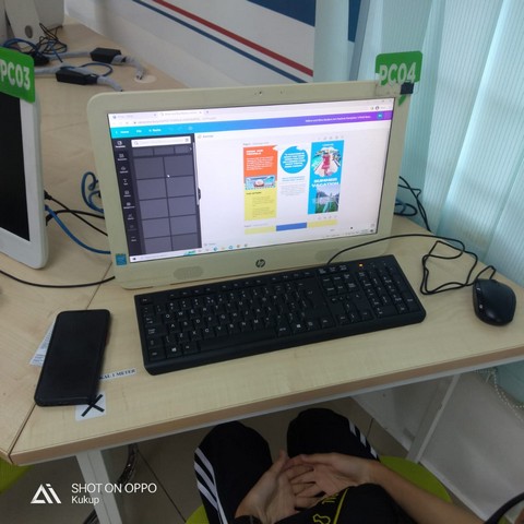 Oleh yang demikian, mereka telah diajar untuk mendaftarkan emel mereka ke akaun Canva sebagai panduan asas terlebih dahulu. Memandangkan aplikasi Canva ini mudah diakses dan percuma, maka kedua-dua mereka diterangkan tentang simbol dan panduan yang terdapat di dalam aplikasi berkenaan. Seterusnya mereka diarahkan untuk memilih pamphlet mengikut cita rasa dan warna kegemaran masing-masing. Setelah selesai memilih rekaan, barulah mereka boleh memasukkan segala data yang diperlukan sebelum dimuat turun.