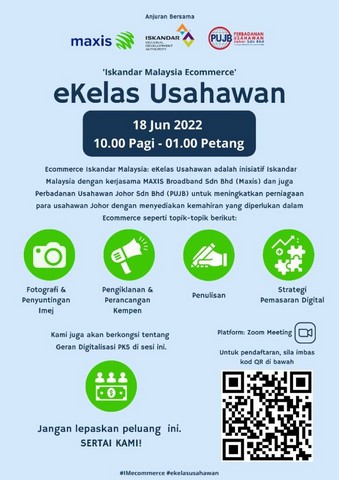 19 Jun 2022 | Aktiviti TerkiniSatu siri webinar eKelas Usahawan telah diadakan dengan jayanya pada 18 Jun 2022 bersamaan hari sabtu menggunakan aplikasi Zoom. Webinar ini dikelolakan oleh pihak Maxis, Iskandar Malaysia Ecommerce dan Perbadanan Usahawan Johor Sdn Bhd (PUJB). PEDi Tanjung Piai turut menyertai webinar ini dalam usaha untuk mendapatkan ilmu pengetahuan berkaitan perniagaan secara pendigitalan. Perkara ini semestinya untuk para usahawan yang bernaung di bawah PEDi untuk disampaikan ilmu berkaitan e-dagang ini yang amat bersesuaian.