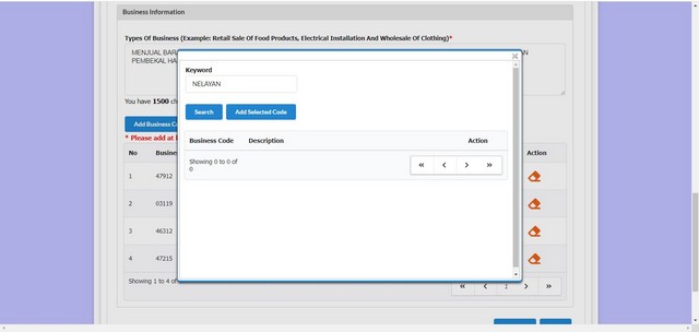 Memandangkan lokasi PEDi Tanjung Piai dikelilingi dengan lautan yang sememangnya menjadi kegemaran para pemancing, maka Encik Muhammad Hanif ingin menjalankan perniagaan sedemikian untuk meraih pendapatan tambahan. Memandangkan beliau sudah memiliki akaun Ezbiz maka adalah mudah untuk meneruskan pendaftaran bermula dengan peletakan nama kedai, alamat perniagaan, maklumat perniagaan sehingga ke peringkat proses pembayaran. Nama syarikat beliau telah didaftarkan dengan nama Hanif Safinis Enterprise selama satu tahun dengan yuran pembayaran sebanyak RM 70.00.