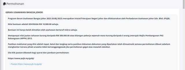 Geran Usahawan Bangsa Johor (GUBJ) 2023