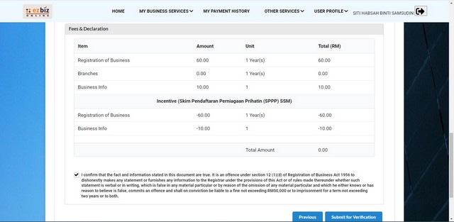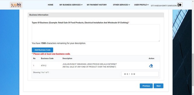 Memandangkan di PEDi boleh dilaksanakan pendaftaran secara atas talian, maka beliau membuat kunjungan ke PEDi dalam usaha untuk mendaftarkannya perniagaan beliau menggunakan saluran yang sah. Beliau telah diterangkan dengan konsep janji temu terlebih dahulu memandangkan beliau belum mempunyai akaun Ezbiz SSM. Kemudiannya beliau diterangkan akan konsep meletakkan nama dalam perniagaan, alamat, jenis perniagaan sehingga ke peringkat pembayaran. Beliau ingin mendaftarkan perniagaan beliau dengan nama Fathia Amani Enterprise. Fathia Amani adalah bersempena dengan nama salah seorang anak beliau.