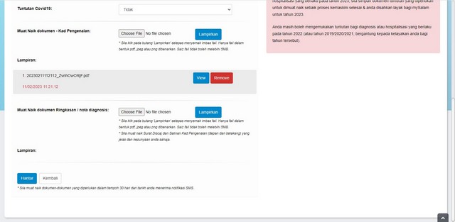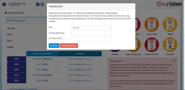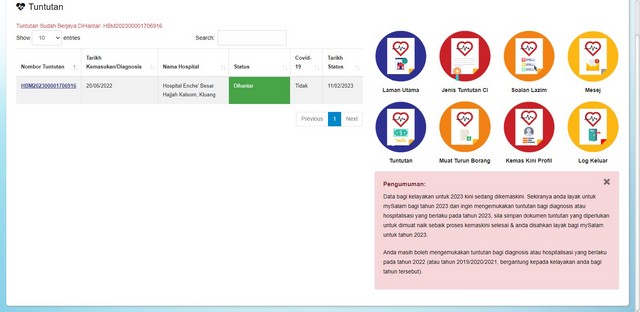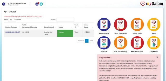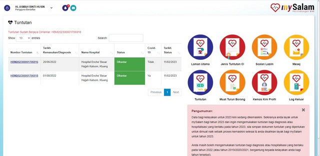 12 Februari 2023 | Aktiviti TerkiniPengurus PEDi telah membantu dua orang komuniti iaitu Puan Asmah binti Husin dengan Encik Zulkifli bin Abdullah mengenai tuntutan hospitalisasi milik mereka. Kedua-dua mereka telah dimasukkan ke hospital pada tahun 2022 dan ingin mengemukakan permohonan MySalam secara atas talian. Hal ini demikian kerana, tuntutan hospitalisasi bagi sesiapa yang masuk ke wad adalah sebanyak RM 50 sehari. Kelayakan adalah berdasarkan kepada penerima Bantuan Keluarga Malaysia (BKM) pada tahun tersebut.