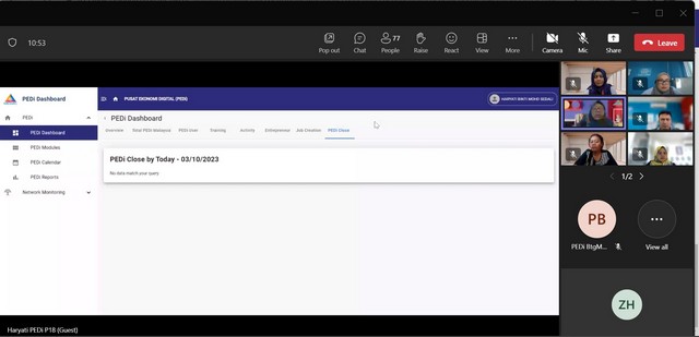 4 Oktober 2023 | Aktiviti TerkiniSatu taklimat telah diadakan oleh pihak pengurusan Sprintz Designs mengenai sistem terbaru melibatkan semua PEDi pada 3 Oktober 2023 bersamaan hari selasa melalui platform Microsoft Teams. Sesi taklimat telah diketuai oleh Puan Maznah binti Shik Ibrahim selaku Pengurus Operasi Sprintz melibatkan 48 buah PEDi yang bernaung di bawahnya. Sistem PEDi yang terbaru telah mula beroperasi hasil dari kesinambungan pihak MCMC bagi menyeragamkan data-data dan input oleh pihak PEDi.