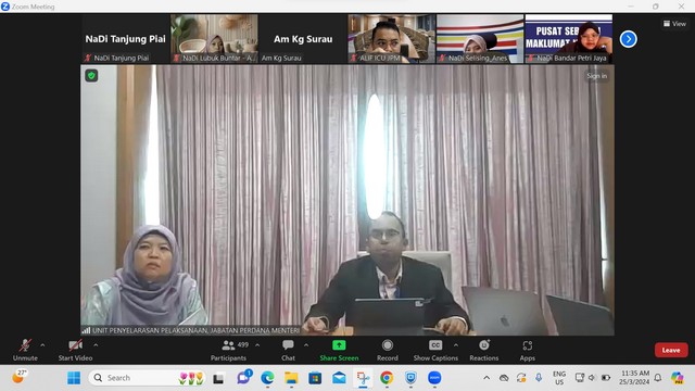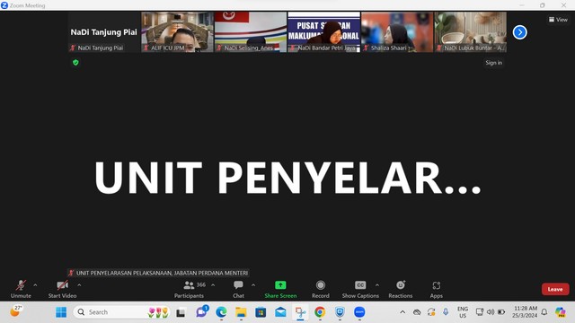 26 Mac 2024 | Aktiviti TerkiniPada 25 Mac 2024 bersamaan hari isnin, telah berlangsungnya satu sesi taklimat program sejahtera SEJATI MADANi yang disampaikan oleh pihak ICU JPM. Taklimat ini dijalankan secara dalam talian menggunakan platform Zoom dan telah diikuti oleh 1000 peserta yang kebanyakkan terdiri daripada petugas NADI. Taklimat ini melibatkan dua sesi bermula pada jam 9.00 pagi sehingga 1.00 petang.