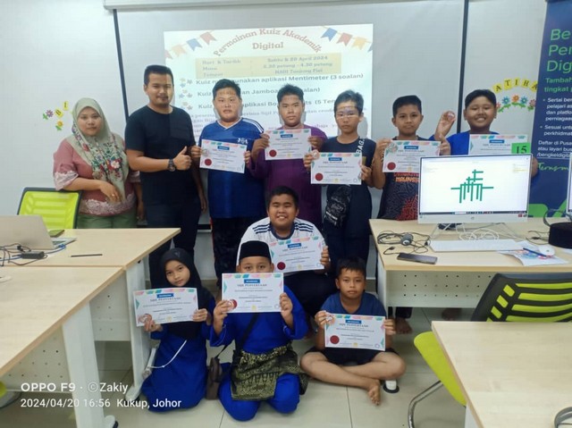 21 April 2024 | Aktiviti TerkiniPada 20 April 2024 bersamaan hari sabtu telah berlangsung satu aktiviti yang amat menarik iaitu Permainan Kuiz Akademik Digital di NADI Tanjung Piai. Permainan kuiz ini berlangsung selama dua jam bermula 2.30 petang dan berakhir pada 4.30 petang. Seramai 10 orang kanak-kanak sekolah rendah berusia antara 7 sehingga 12 tahun telah menyertai aktiviti yang diadakan. Kuiz yang berpaksikan kepada digital ini merangkumi subjek pembelajaran seperti bahasa Melayu dan Matematik.