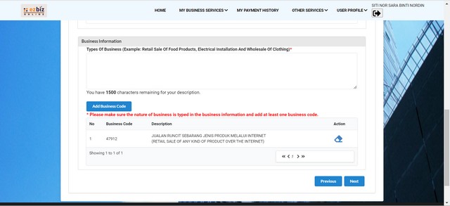 3 Mac 2024 | Aktiviti TerkiniPuan Siti Nor Sara binti Nordin telah hadir ke PEDi Tanjung Piai untuk dibantu dari segi permohonan lesen perniagaan SSM milik beliau pada 2 Februari 2024. Beliau merupakan seorang usahawan mikro yang menjalankan perniagaan makanan dan minuman di sekitar Bandar Pontian. Beliau mengakui akan kebimbingan berniaga sekiranya tidak mempunyai lesen perniagaan yang sah maka beliau telah dibantu untuk mendaftarkan perniagaan miliknya di sistem Ezbiz SSM.