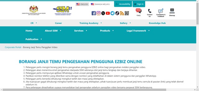 Justeru, langkah yang pertama adalah dengan perlu membuat janji temu bersama pegawai SSM menerusi panggilan video Whatsapp. Seterusnya, Puan Yati perlu mengemukakan butiran maklumat perniagaan yang lain seperti nama perniagaan, jenis perniagaan dan alamat perniagaan. Beliau ingin mendaftarkan perniagaan beliau dengan Yati Said Enterprise.