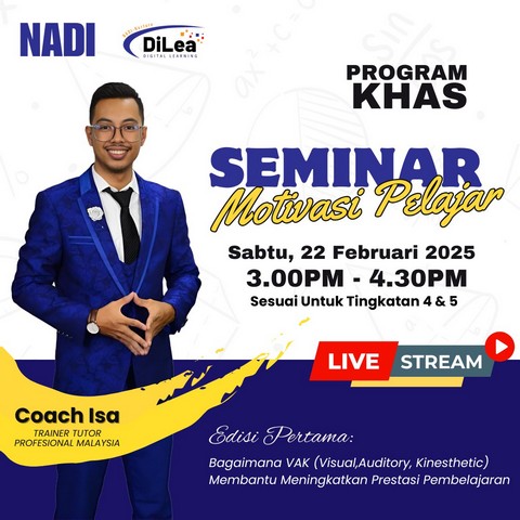 23 Februari 2025 | Aktiviti TerkiniPada 22 Februari 2025 bersamaan hari sabtu telah berlangsungnya satu program khas bercorak motivasi kepada para peserta dari NADI Tanjung Piai. Program ini telah berlangsung pada jam 3.00 petang sehingga 4.30 petang melibatkan 13 orang pelajar Tingkatan 4 dan Tingkatan 5. Seminar ini memfokuskan kepada kaedah yang boleh diterapkan oleh para pelajar untuk membangkitkan semangat dalam pembelajaran ketika di sekolah.